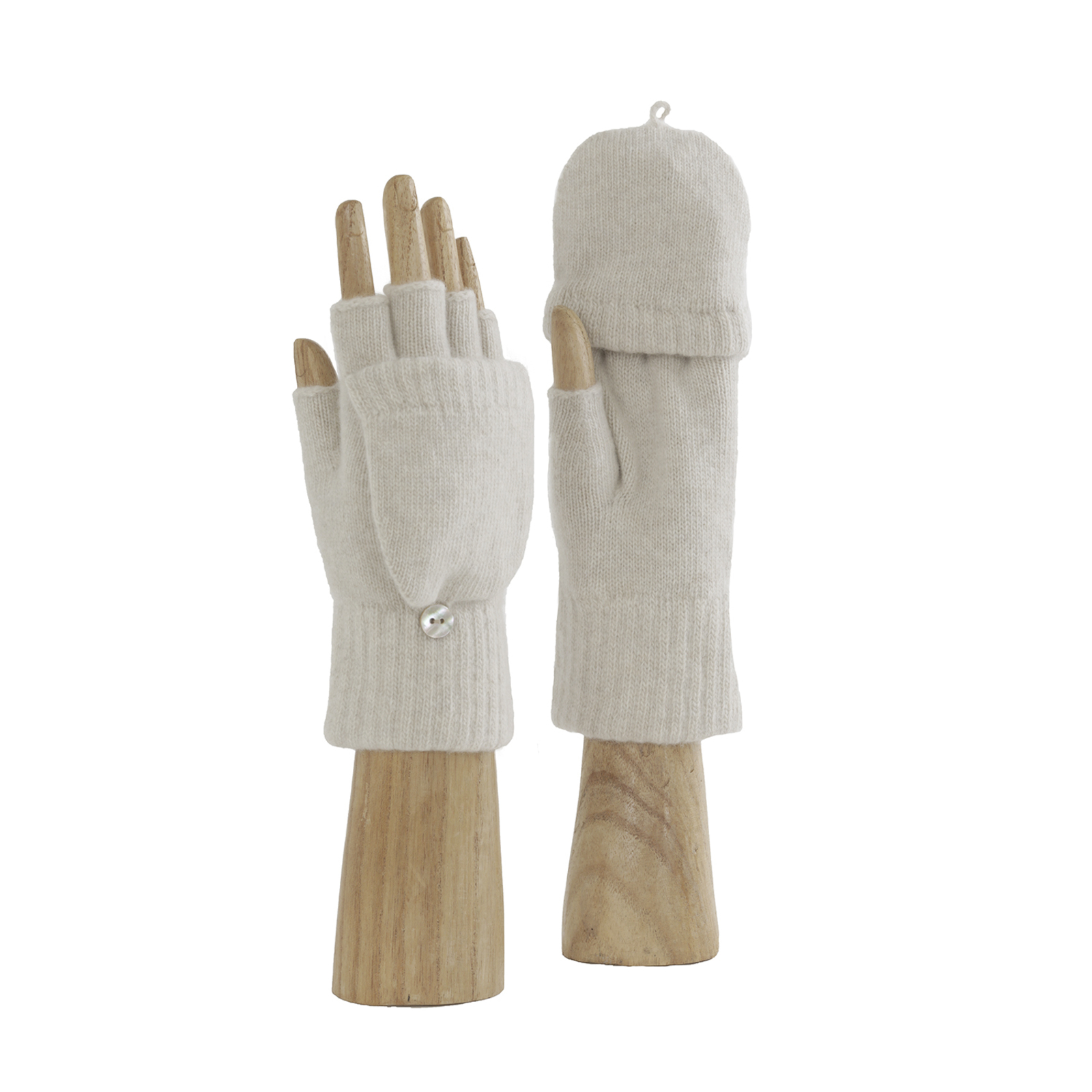 Fingerless gloves with capuche for ladies, in wool & cashmere.
