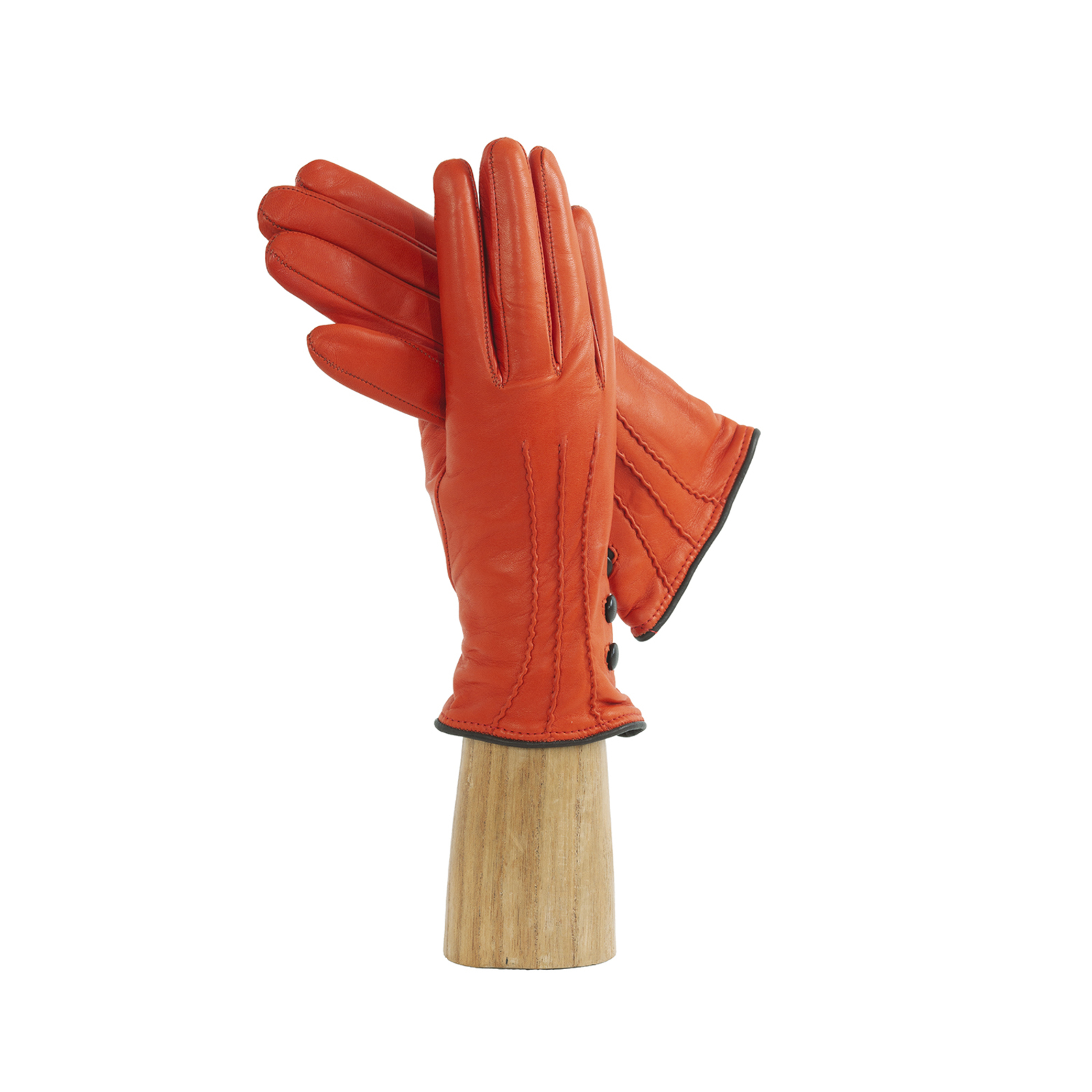Two-tone fancy glove for ladies in cashmere lined lamb leather.