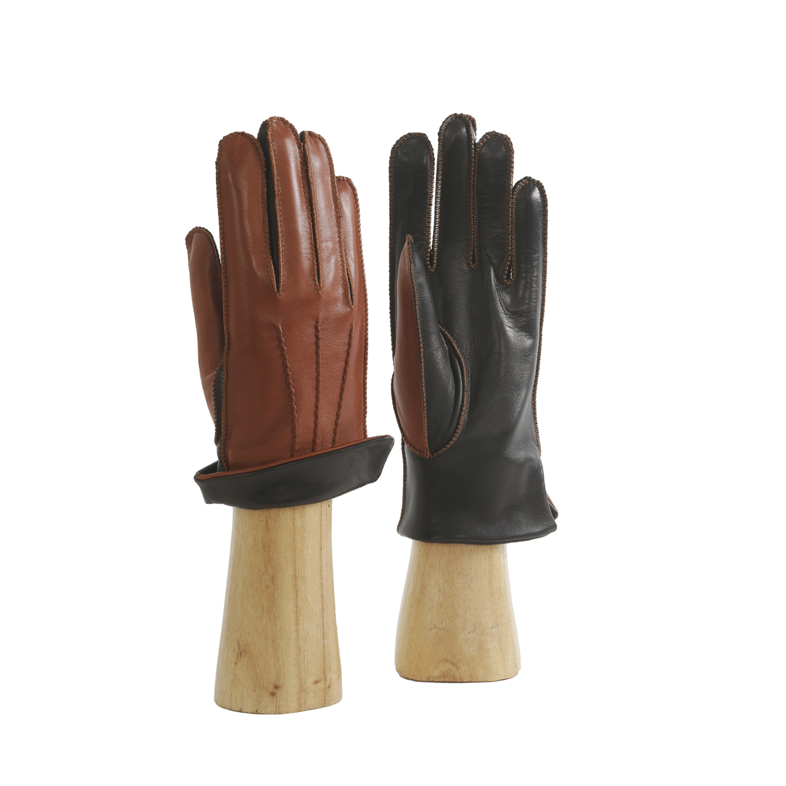 Gant bicolore pour homme en cuir d'agneau doublé soie.