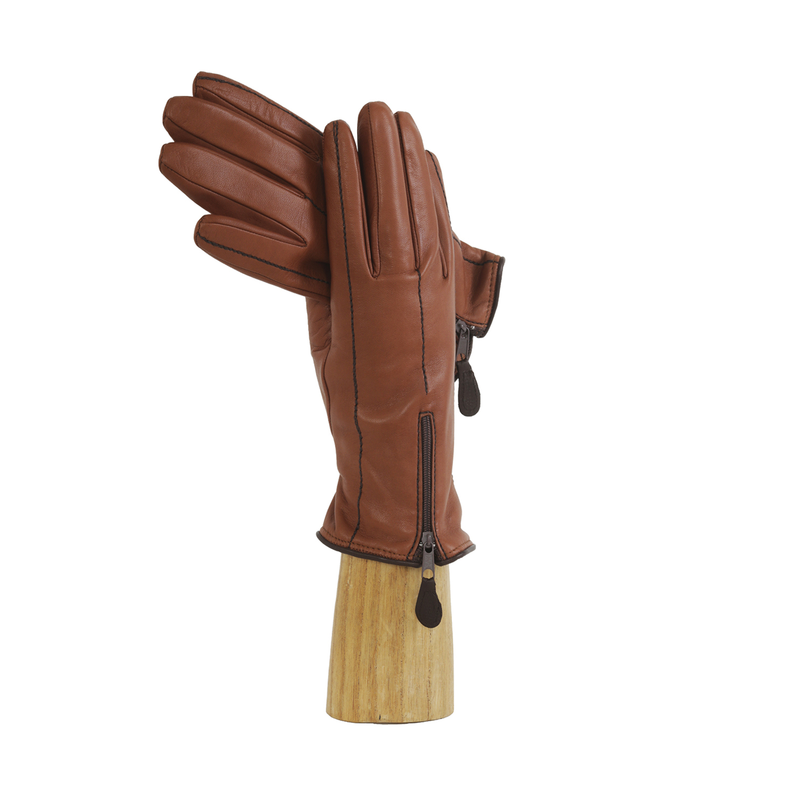 Two-tone glove for ladies in cashmere lined lamb leather.