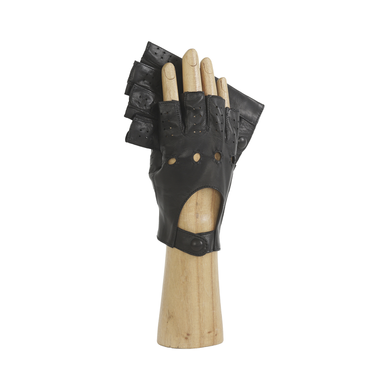 Fingerless driving glove for men in unlined lamb leather.